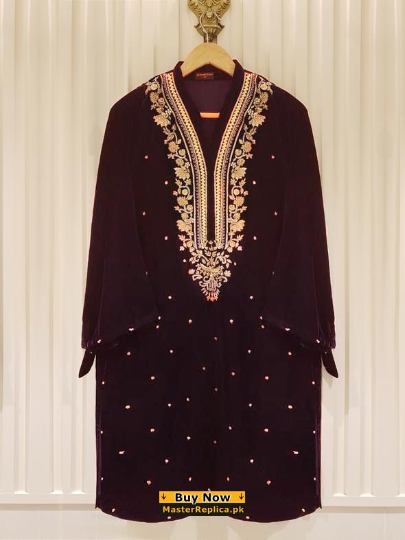 Agha Noor Maroon Velvet Dress Replica
