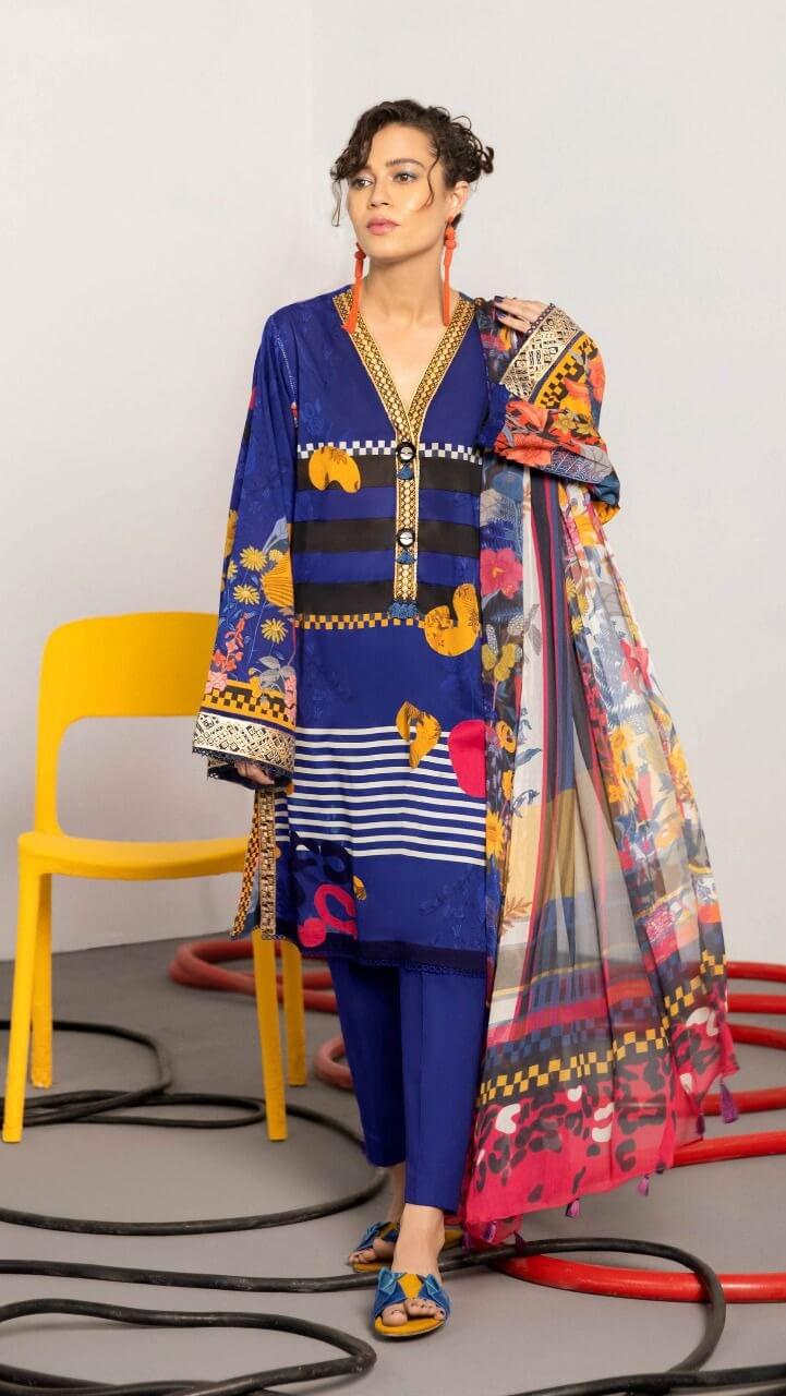 Fully Embroidered Chiffon Front and Back