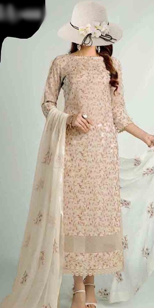 Fully Embroidered Net Front and Back with Embroidered Daman