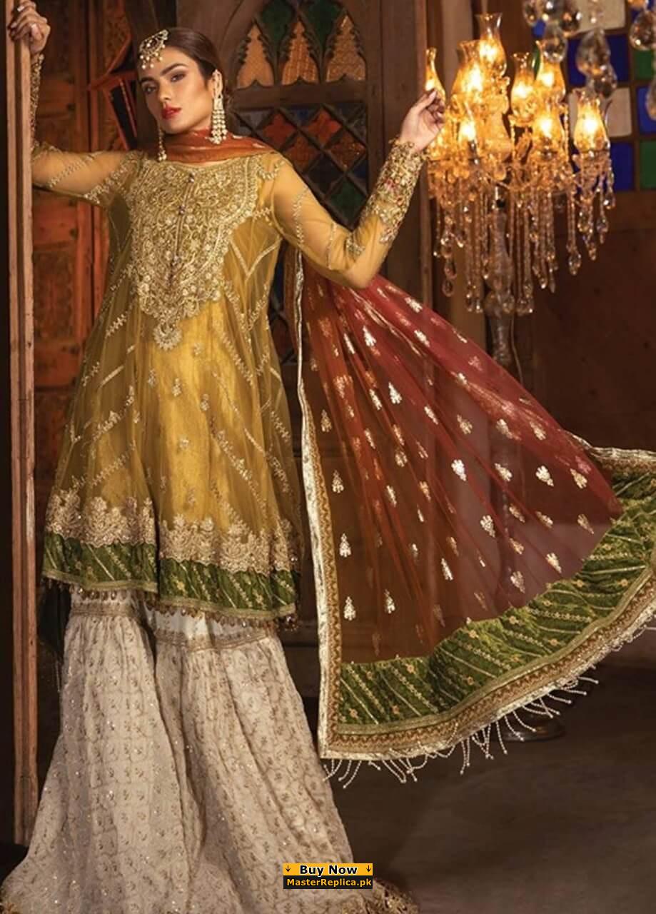 Dazzle in this alluring embroidered Master Replica from the Latest Designer Bridal Collection depicting the Finest Craftsmanship.