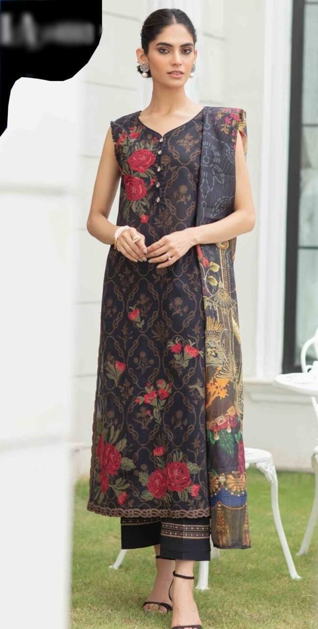 Embroidered Linen Front with Embroidered Daman