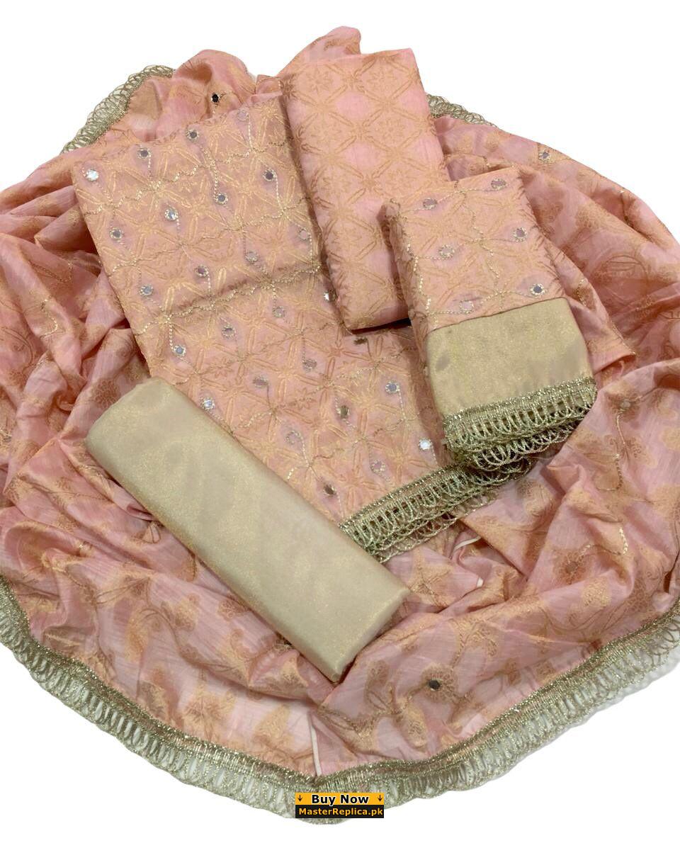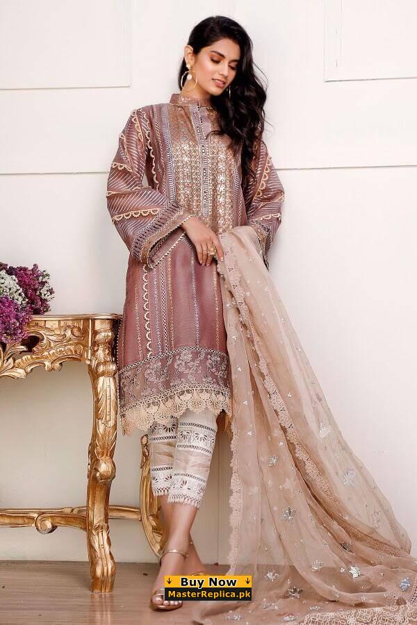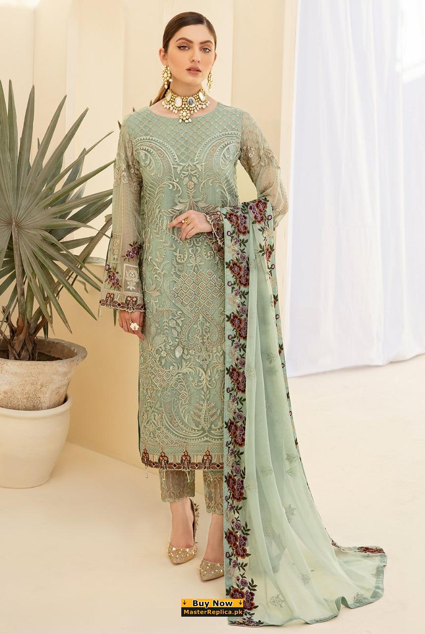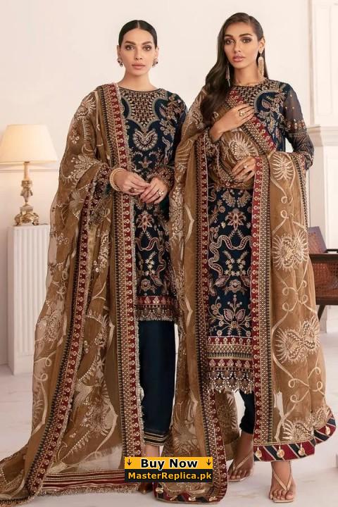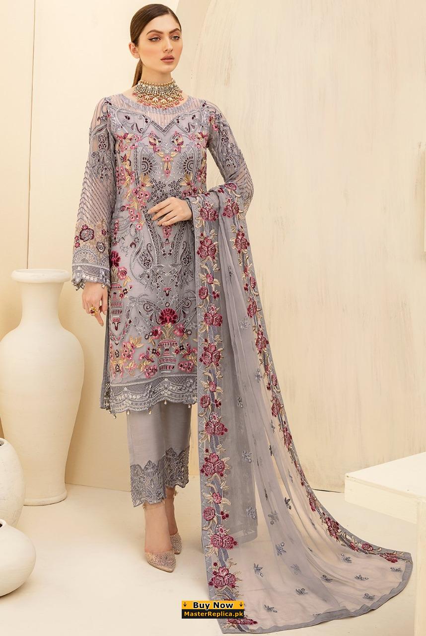 Dazzle in this alluring embroidered Master Replica from the Latest Ramsha Chiffon Collection depicting the Finest Craftsmanship.