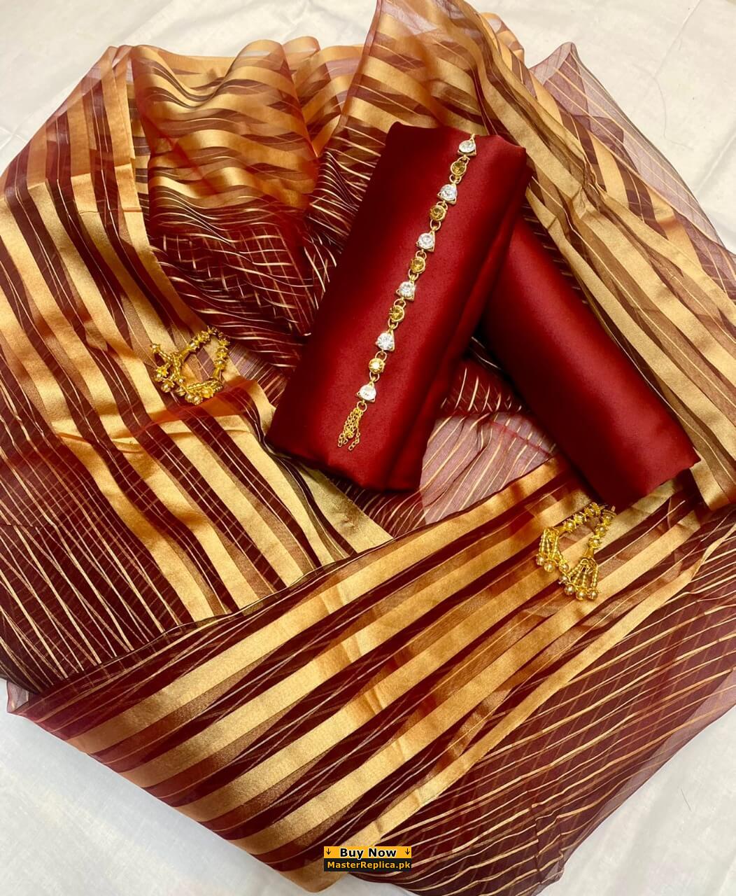 A powerful contrast is all you need to make that statement. This stunning Master Replica from the Latest Designer Chiffon Collection is perfect for any occasion.