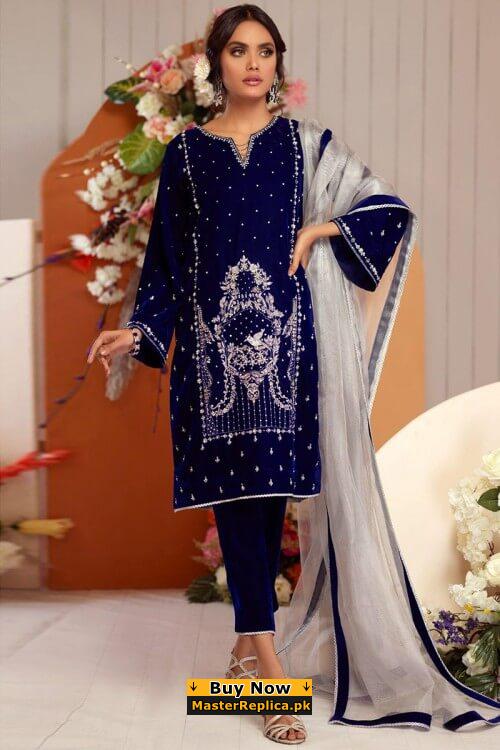 Steal the show with this appealing 3-piece Master Replica from the Latest Designer Velvet Collection.