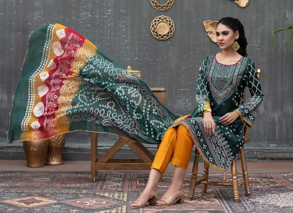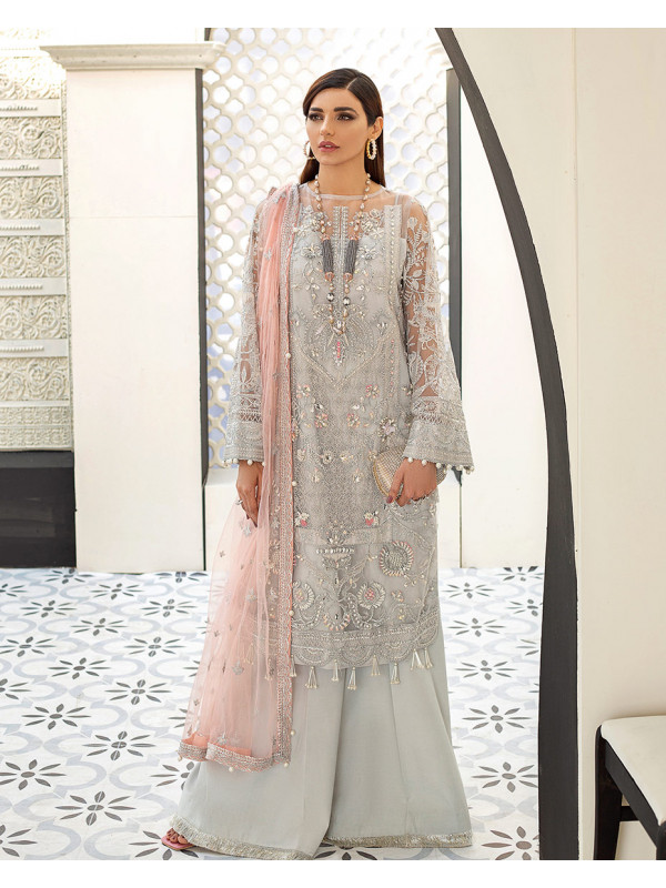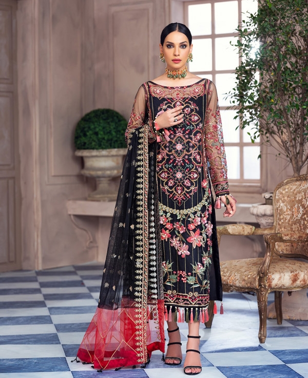 Fully Embroidered Net Hand work and Thread work Front and Back