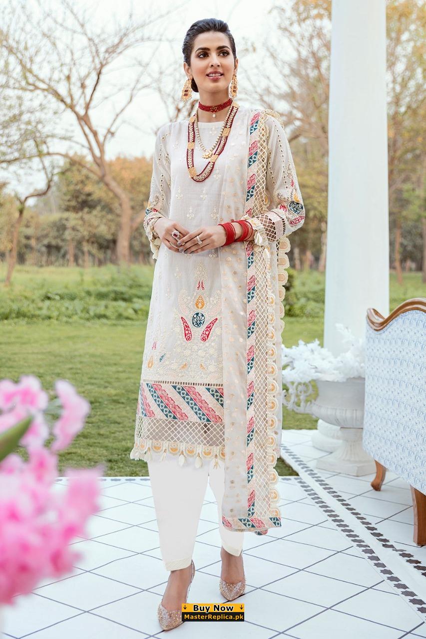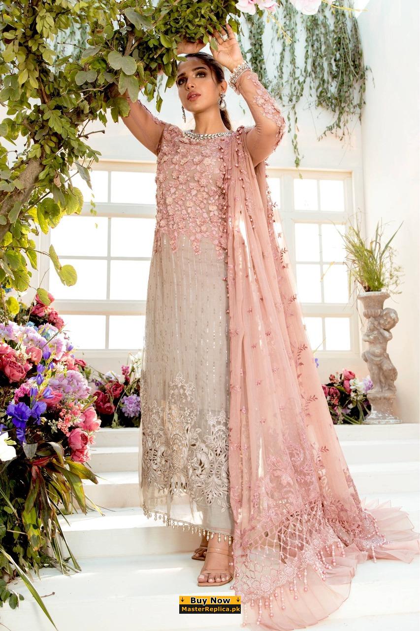 Dazzle in this alluring embroidered Master Replica from the Latest Emaan Adeel Collection depicting the Finest Craftsmanship.