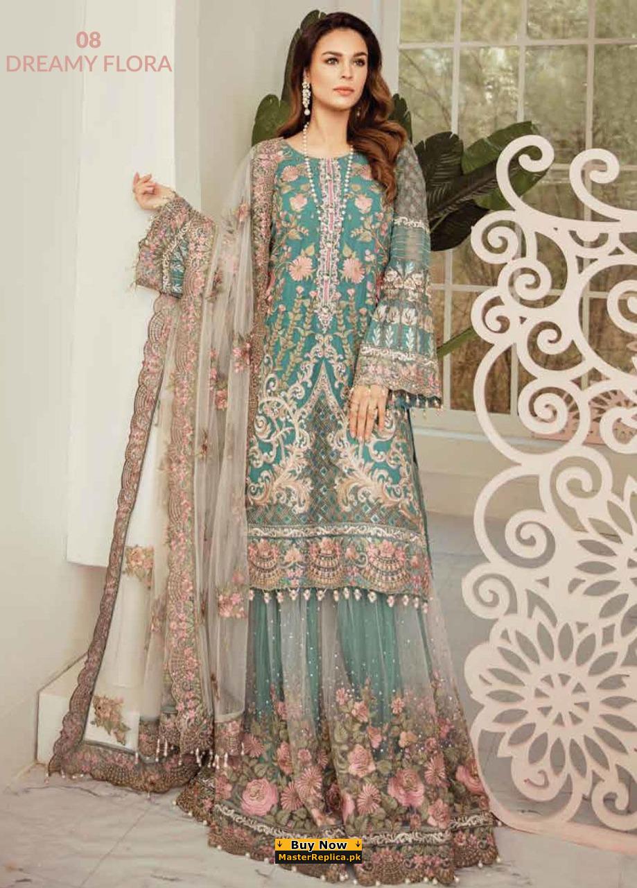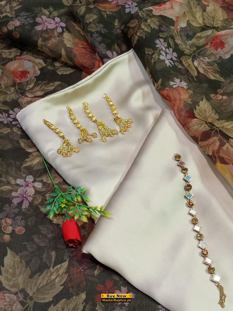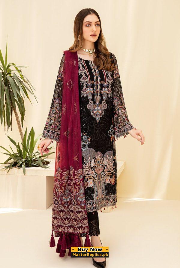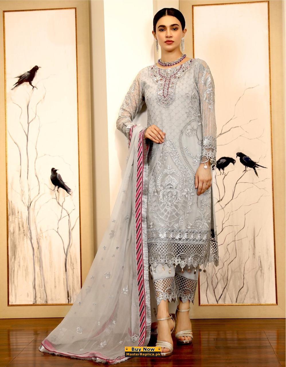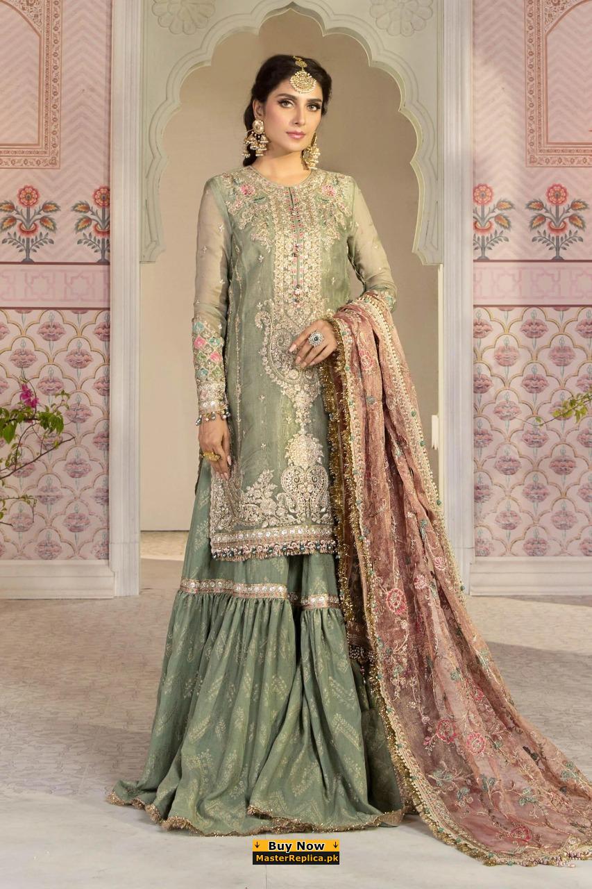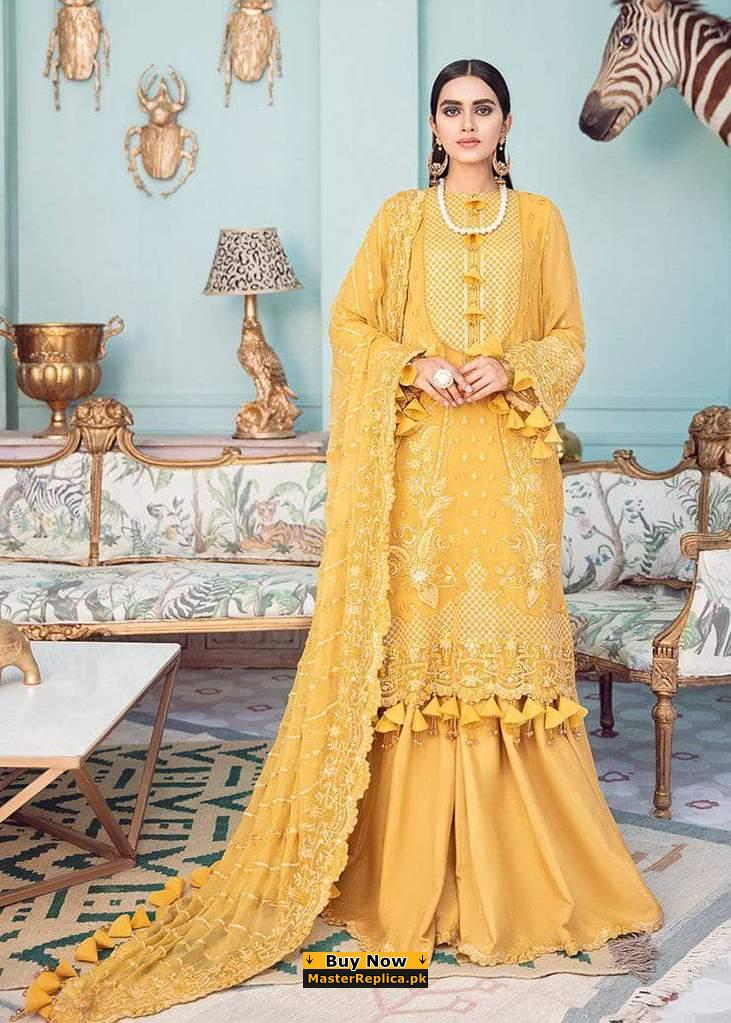 Steal the show with this appealing 3-piece Master Replica from the Latest Collection of Agha Noor.