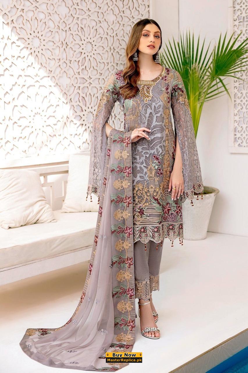 Ramsha Gray Chiffon Collection Replica