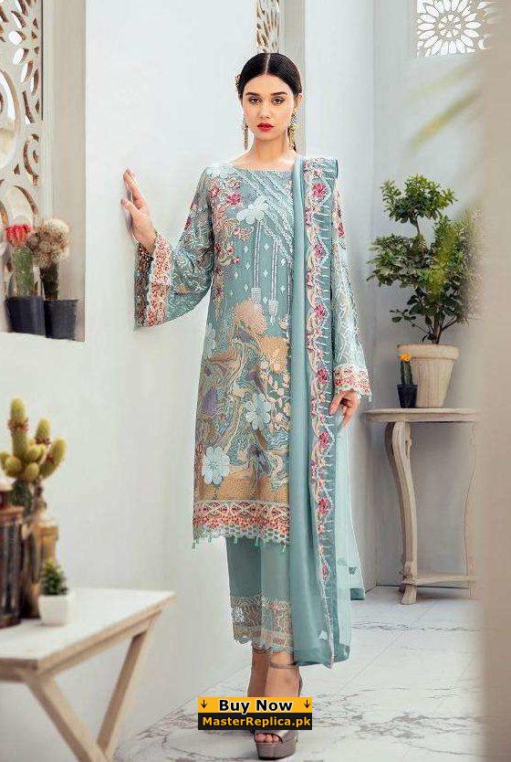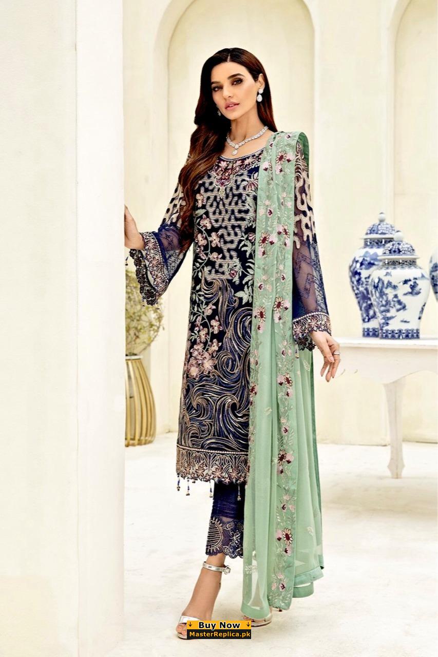 Boost your confidence and style in this gorgeous Master Replica from the Latest Ramsha Chiffon Collection.