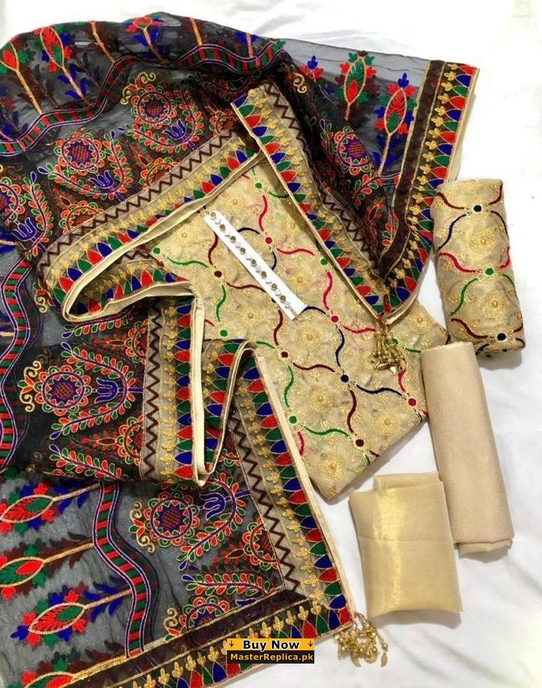 An example of beauty and elegance. Look breathtakingly stylish in this embroidered Master Replica from the Latest Collection of Jazmin