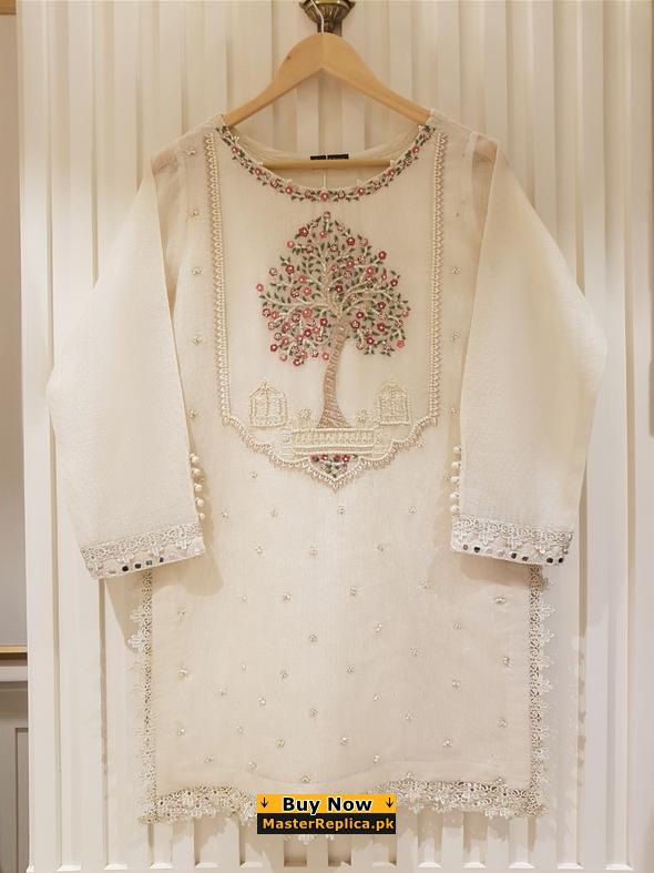 Dazzle in this alluring embroidered Master Replica from the Latest Noor by Saadia Summer Collection depicting the Finest Craftsmanship.