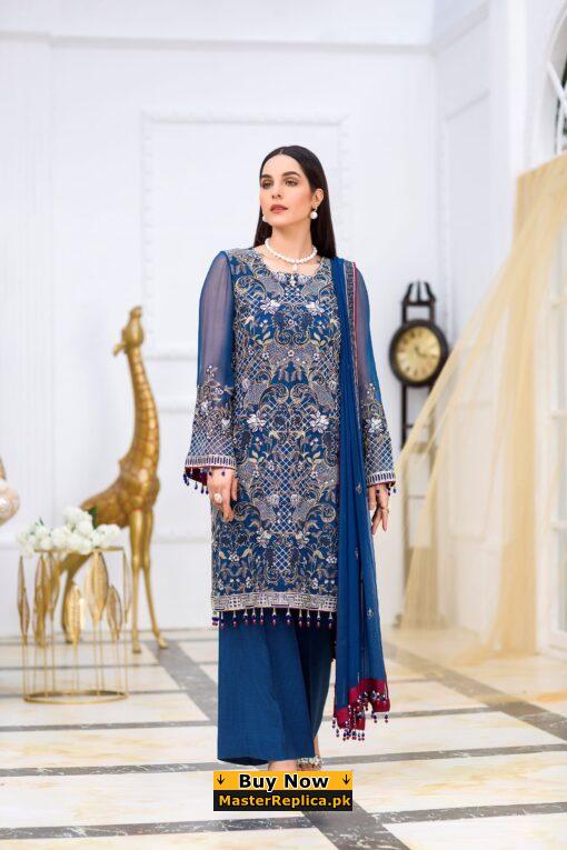 Dazzle in this alluring embroidered Master Replica from the Latest Maria B Summer Collection depicting the Finest Craftsmanship.