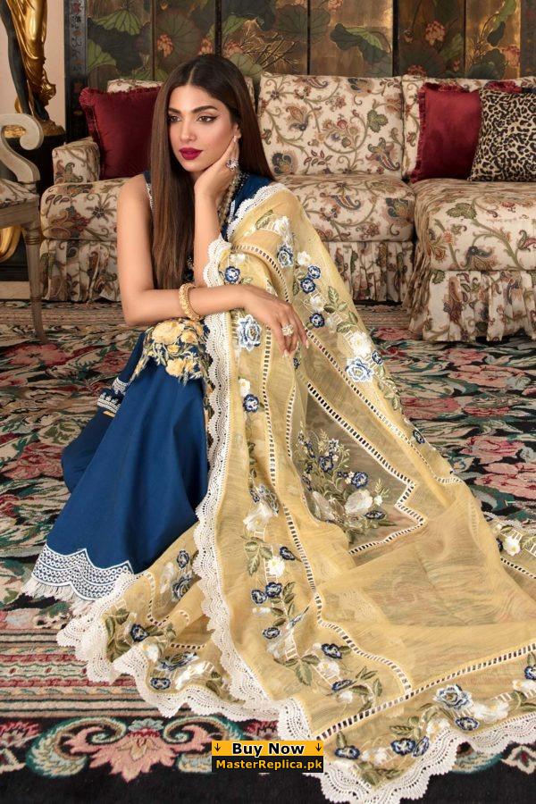 Maria B Blue Lawn Collection Replica