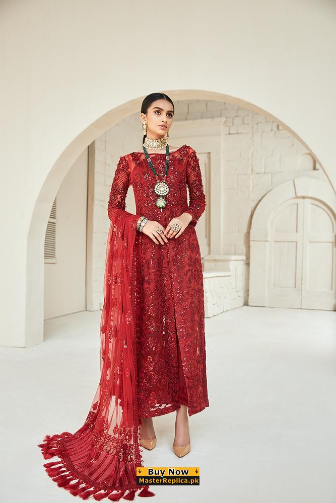 Crimson Embroidered Lawn Master Replica