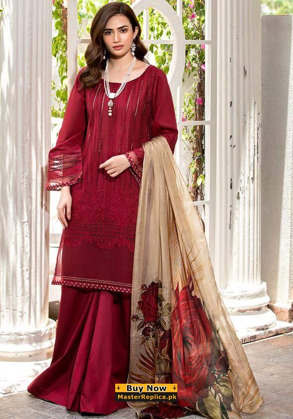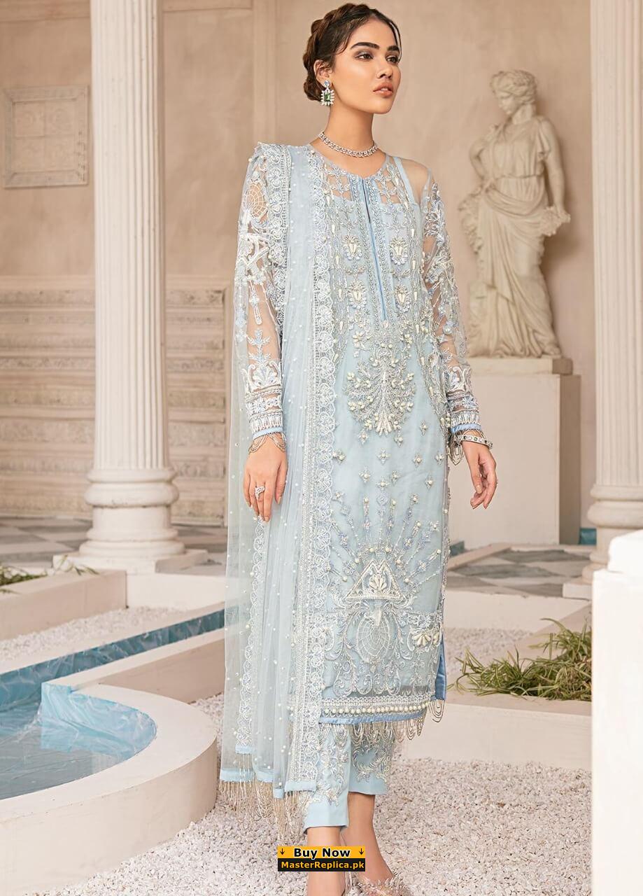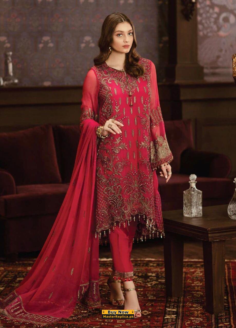 Bring out your beauty with this traditional yet modern embroidered Master Replica from the Latest Maria B Wedding Collection.