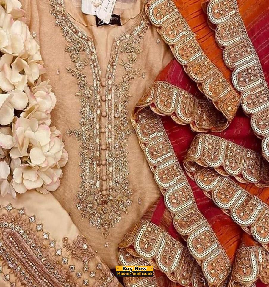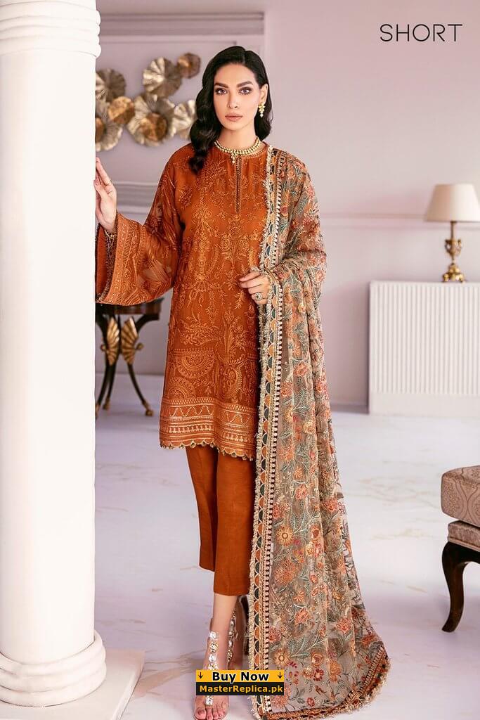 Make a grand entrance in our sophisticated Master Replica from the Latest Collection of Aayra featuring a delightful display of embroidery to make you stand out.