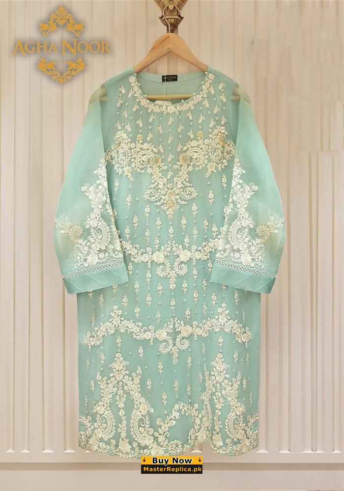 Dazzle in this alluring embroidered Master Replica from the Latest Agha Noor Collection depicting the Finest Craftsmanship.