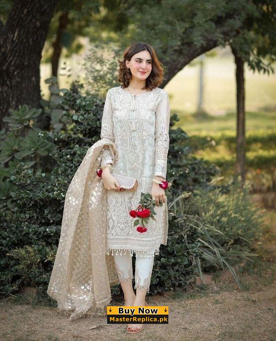 Look like a vision of elegance in this effervescent Master Replica from the Latest Collection of Sobia Nazir, paints a picture of rich tradition