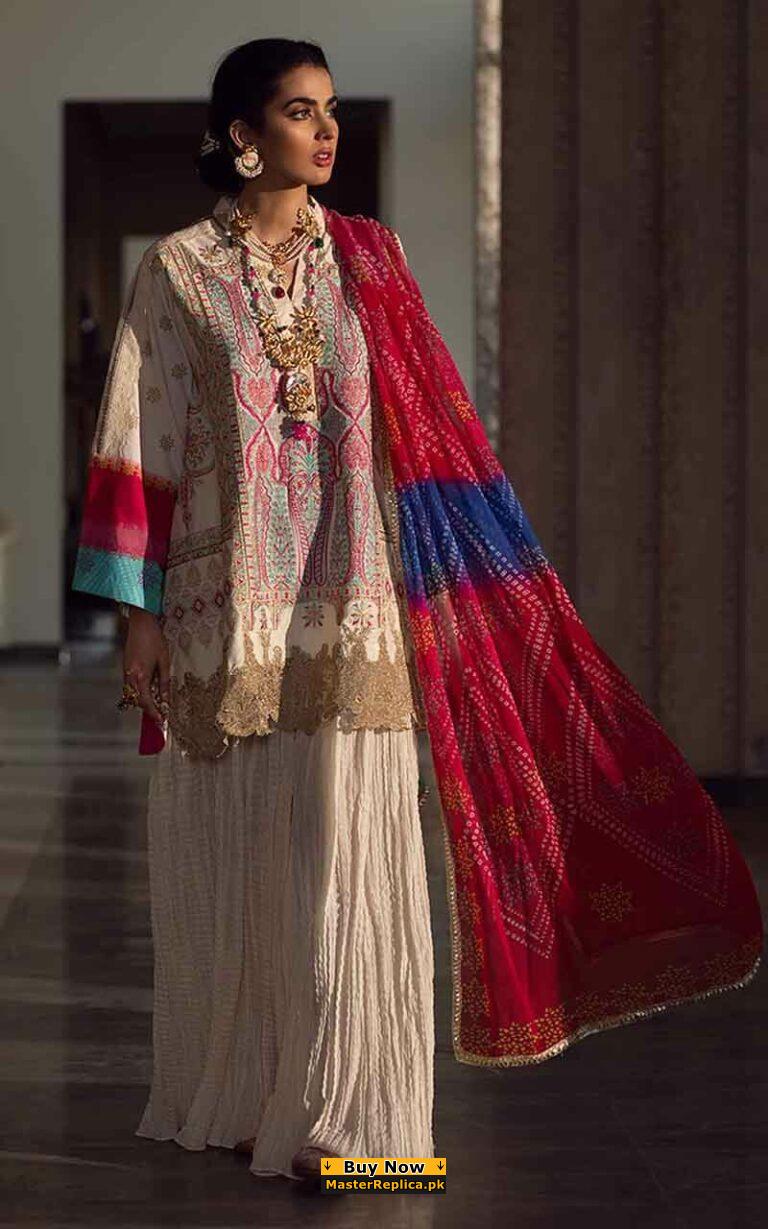 Bring out your beauty with this traditional yet modern embroidered Master Replica from the Latest Baroque Summer Collection.