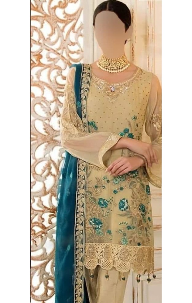 Fully Embroidered Chiffon Shirt Front enhanced with Embroidered Daman and Embroidered Neck